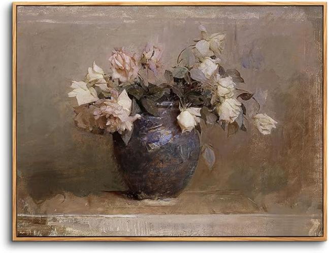 Ongebruikt, ok, Hyidecorart Canvas Schilderij Woonkamer Ingelijst, Vintage Schilderijen Rozen in Vaas, Prints Wall Decoration Slaapkamer Kantoor Keuken Badkamer,B0DFGZ4YFH