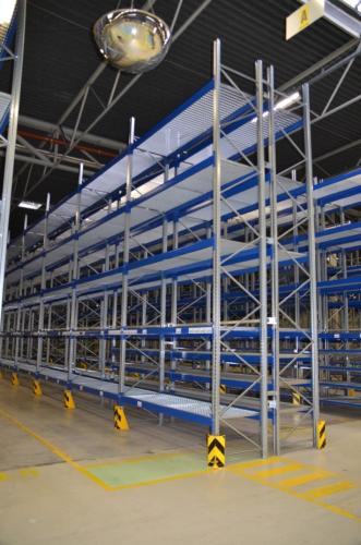 Hoogte=6000mm. 13 staanders. 80 liggers lengte=2700mm. 12 liggers= lengte 2200mm. 12 liggers= lengte 1800mm. Voorzien van roosters en aanrijbescherming.