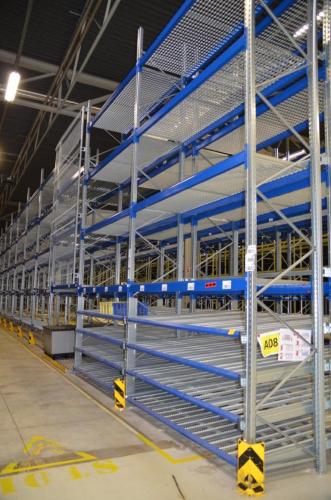 Hoogte=6000mm. 13 staanders. 106 liggers lengte=2700mm. Voorzien van roosters en aanrijbeveiliging.