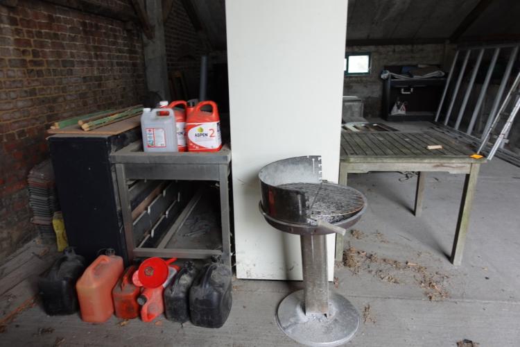 oa: meubels, barbecue, inox kast, grijpbaken,banden,...