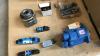 Totaal ca 110 diverse hydraulische kleppen en ventielen, inclusief partij cartridges, partij Eaton schakelkasten en palletbox met diverse materialen.