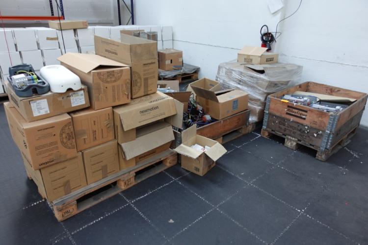 7x Pallet elektrische onderdelen laadpaalproductie
