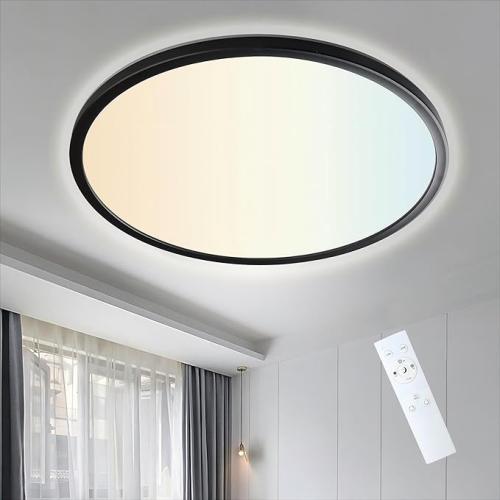 Ongebruikt, getest en werkend, volledig, ok, verpakking beschadigd, ONDTA LED plafondlamp dimbaar 45 W, 2700 K - 6500 K 6000 LM plafondlamp zwart met afstandsbediening, IP44 keukenlamp, badkamerlamp, ultradun LED-paneel voor keuken, woonkamer, zwart, rond, B0F1TQ9216