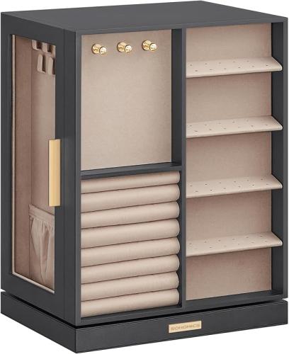 Ongebruikt, volledig, ok, SONGMICS JBC170G01 Sieradendoosje 360° draaibaar, sieradendoos, 5 laden, zijdelingse glazen ramen, ruim, verticale sieradenopslag, open design, cadeau-idee, leigrijs, B0C8HV8M6H