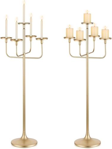 Ongebruikt, ok, compleet, Sziqiqi Gouden Vloerkandelaar voor Bruiloften: 2 Stuks Kandelaar Centrepiece van 122 cm Hoog voor Pijlerkaarsen - 5-armige Extra Grote Kaarsenhouder voor Kerstmis Verjaardagsfeestjes, B0DBQDHH5R