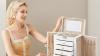 Ongebruikt, ok, SONGMICS Sieradenbox, groot, 6 niveaus met vleugels, laden, spiegel en sluiting, voor armbanden, oorbellen, ringen, halskettingen, horloges, kerstcadeau, wit JBC152W01