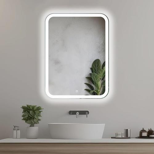Ongebruikt, getest, ok, Venti 50x70 cm Verticale Badkamerspiegel met LED Verlichting, Verlichte Badkamerspiegel met Aanraakschakelaar, afgeronde hoeken, rechthoekige LED badkamerspiegel met natuurlijk witte LED verlichting, B0CJ532JF6