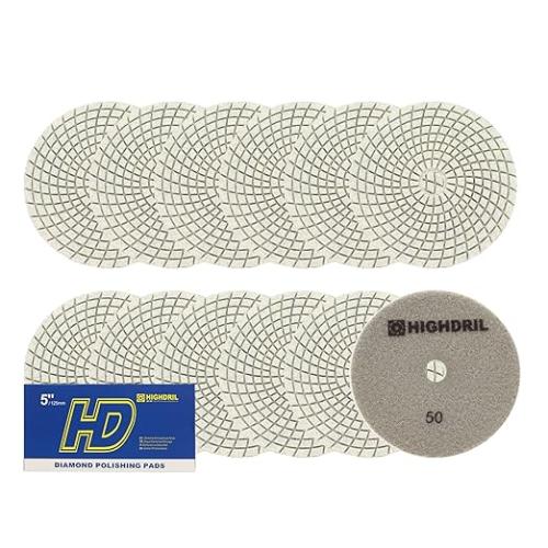 Ongebruikt, ok, compleet, Natte Diamant Polijsten Pads, HIGHDRIL 12 stks 125MM #50, voor Graniet Marmer Schuren gebruikt op Grinder of Polijstmachine, B0BK94T647