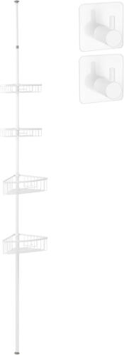 Ongeopend, in seal, Telescopische doucherek zonder boren, 4 manden, in grootte verstelbaar van 76 tot 280 cm, rubberen eindstukken, gepoederd staal met witte look + 2 zelfklevende haken, wit, B08LW31FBV
