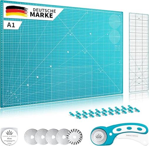 Ongebruikt, ok, foto indicatief (enkel snijmat en liniaal), Lange & König Set snijmat en liniaal, (A1-set, turquoise), B08C5J5JTK