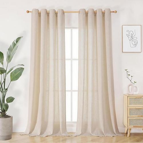 Ongeopend, Joydeco Linnen gordijnen met inslagringen, natuurlijk linnen (bevat echt linnen), 225 x 132 cm (h x b), 2 stuks, voor woonkamer, slaapkamer, doorschijnende gordijnen, B0D3FXG3NB