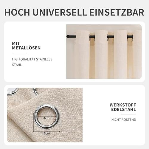 Ongeopend, Joydeco Linnen gordijnen met inslagringen, natuurlijk linnen (bevat echt linnen), 132*260cm , 2 stuks, voor woonkamer, slaapkamer, doorschijnende gordijnen, B0D3FX3L74