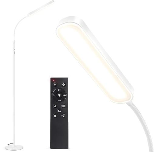 Gebruikssporen, werkt, remote is stuk, schade aan touchknoppen, OUTON Staande lamp, led, dimbaar, 15 W, 1500 lumen, leeslamp met 4 kleurtemperaturen, afstandsbediening en touch-bediening, 1 uur timer, leesverlichting, voor woonkamer, slaapkamer, kantoor, wit , B08KD2TWG8