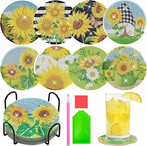 Ongeopend, Diamond Painting Volwassenen, Set van 8 Diamond Painting Onderzetters met Houder Knutselset Volwassen DIY Set voor Kinderen Meisjes Cadeaus 10 11 12 Jaar Knutsel Volwassenen Verjaardagscadeau Zonnebloem, B0C2D9CDZP