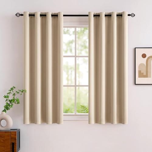Ongebruikt, ok, MIULEE 2 gordijnen met ogen, ondoorzichtig, voor ramen, isolerend, robuust, zwaar, geblokkeerd, decoratie voor kinderen, slaapkamer, woonkamer, toilet, kantoor, 117 x 137 cm (l x h), beige,B0CT2S665L