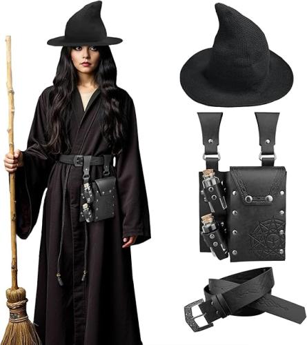 Ongeopend, in seal, HiiFeuer Middeleeuwse kunstleren alchemieset, heksenhoed voor dames, fantasietovenaarsriem met heuptasje met drankflesjes, B0DHCK17LH