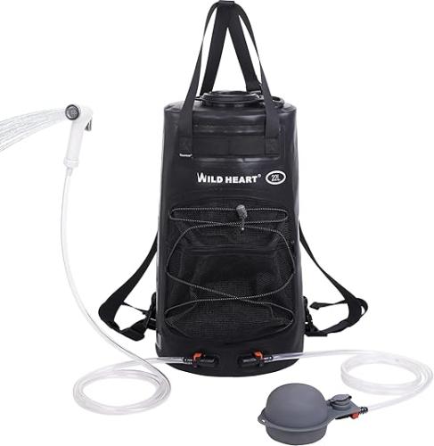 Ongebruikt, volledig, ok, WILD HEART Campingdouche (22L) -Draagbare Douche voor Kamperen met Drukvoetpomp en Slang - Zonne-Douchetas Rugzak voor Kamperen, Roadtrips en Buitengebruik, B0BGLFMG4C