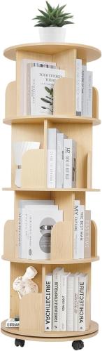 Ongeopend, uyoyous Boekenrek van massief hout met wieltjes, 360 graden draaibaar, multifunctioneel opbergrek , 4 etages, B0CN99KXWQ