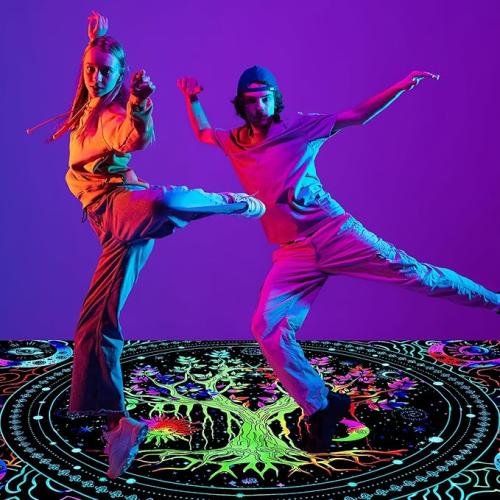 Ongeopend, HOLAVIDA Blacklight Levensboom Tapijt, UV Reactief Neon Fluorescerend Gebied Tapijt, Antislip Lichtgevende Levensboom Maan & Zonnetapijt, Glow in The Dark Boho Decor voor Speelkamer Slaapkamer, B0DKBSZZXT