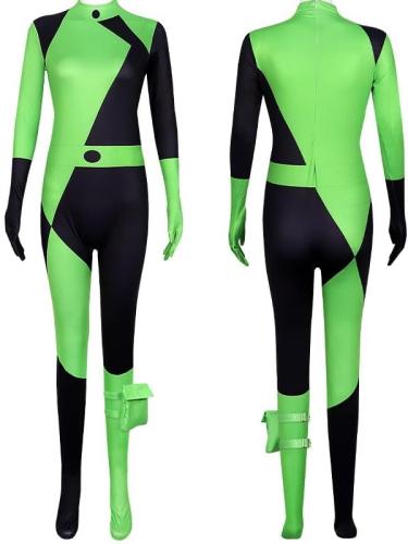 Minieme gebruikssporen, ok, L, Claofoc Shego-kostuum voor dames, superschurk, cosplay, bodysuit, jumpsuit met handschoenen, beenzak, groen uniformpak, outfit voor Halloween, party, carnaval, B0CTCHNHV1