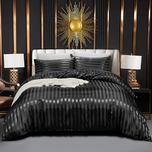 Ongeopend, ok, Luofanfei satijnen beddengoed (135 x 200 cm) 4-delige glanzende satijnen verkoelende zwarte beddengoedset 135 x 200 cm zijdezacht luxe effen gestreept zomerdekbedovertrek met ritssluiting, B0BYJVX5TV