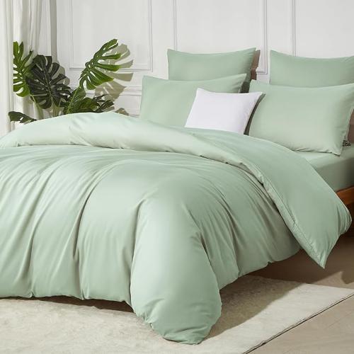 Ongeopend, ok, Luofanfei Katoenen beddengoed (155 x 220 cm), groen, effen patroon, renforcé, katoenen beddengoedset, effen, ademend, modern dekbedovertrek en 2 kussenslopen 80 x 80 cm, zacht en strijkvrij, B0DTK4PWGM