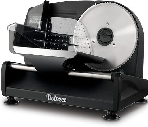Minieme gebruikssporen, getest en werkend, volledig, ok, Twinzee Elektrische Allessnijder - Verstelbare dikte van 0 tot 15mm - Worstensnijmachine, Broodsnijmachine, Hamsnijmachine - Elektrische Groentesnijmachine - Vlees, Kaas, B087V22SFZ