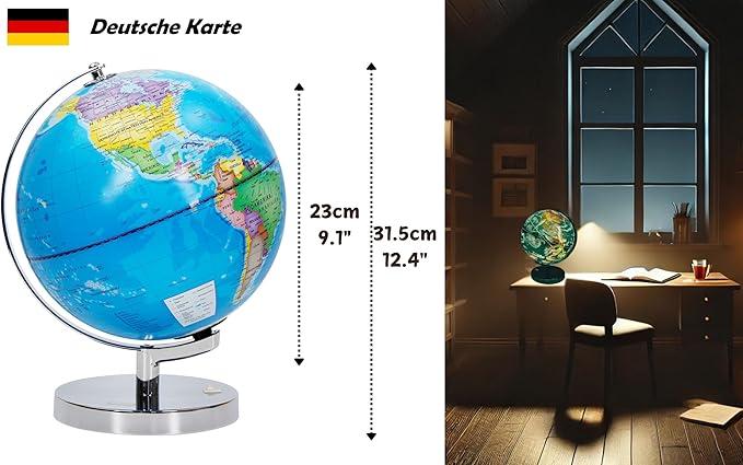 Ongebruikt, getest en werkend, Exerz Lichtgevende wereldbol 23 cm - Metalen sokkel - Duitse kaart - Schoolbol met ledverlichting met batterijen ( niet inbegrepen) B0B4X5LL2T