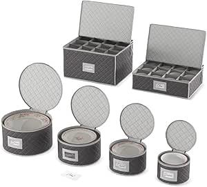 Ongeopend, ok, Woffit Servies Opbergset - Gewatteerde Containers voor Series & Glazen - 12 Personen, 6-delige Servies Opbergkit bevat ook 48 Vilten Beschermers voor Borden, B07DGG4QPQ