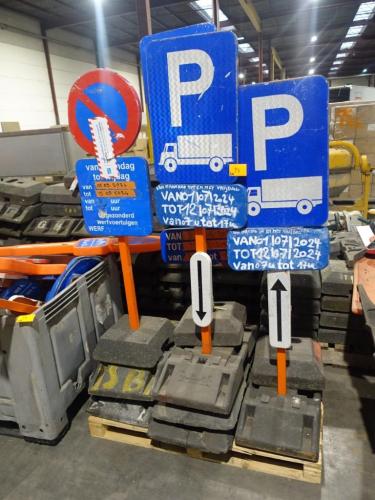 plm 9 voetstukken + 4 signalisatie borden
