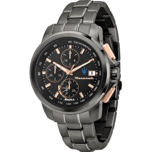 Maserati Successo Solar heren horloge zwart/rose Ø 44mm