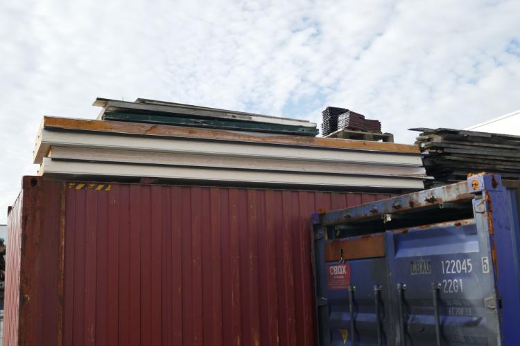 4 gebruikte sandwichpanelen voor platdak + 2 sandwichpanelen voor wand