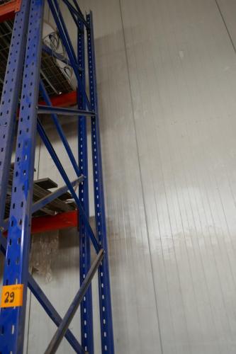 Stalen gedemonteerd magazijnrek bestaande uit : 4 staanders ( L500 cm ) - groot antal oranje liggers ( L380 cm )