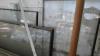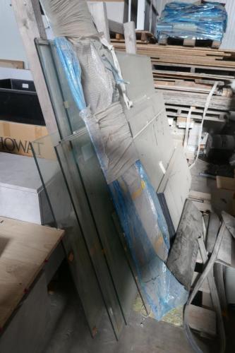 Partij diverse glazen ruiten - dubbel en enkel glas + houten vensterbok ( enkele ruiten staande tegen de muur )