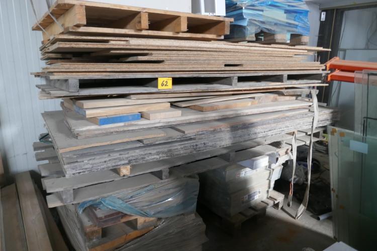 Stapel OSB platen + multiplex platen + pakken groene isolatie (oa gebruikt)