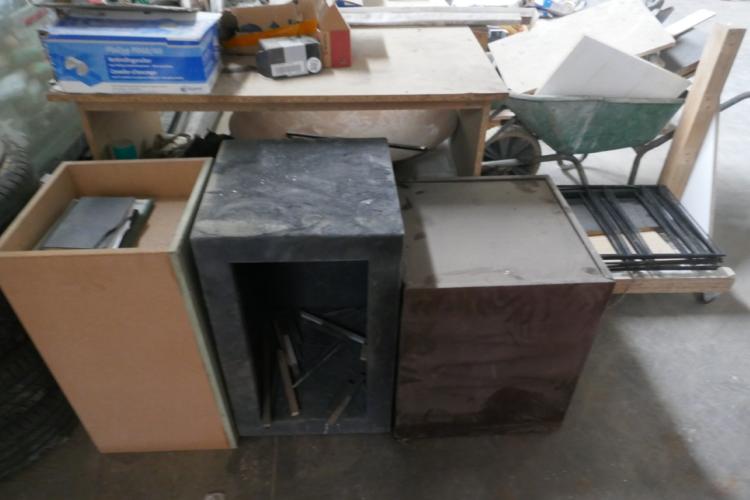 Verrijdbare houten plateauwagen met ijzeren roosters