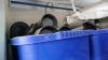 Diverse verlichtingsarmaturen - 4 plastieken boxen met zwarte spotverlichting