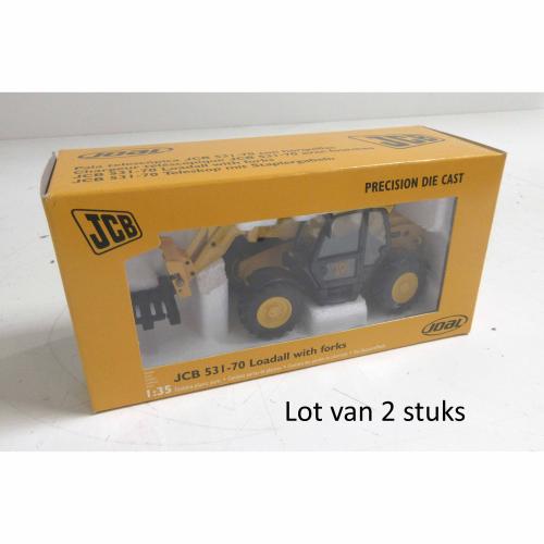 Lot van 2x Miniatuur telescopische verreiker JCB 531-70 met vorken
