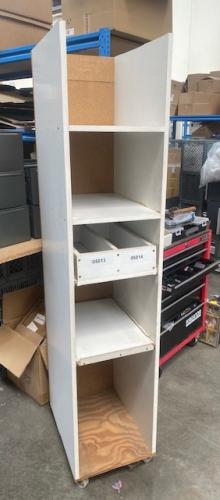 5 Stuks - Voorzien van 1 lade onderverdeeld in 2 vakken en 1 uitschuifbare plank. De kasten staan elk op 4 wieltjes.