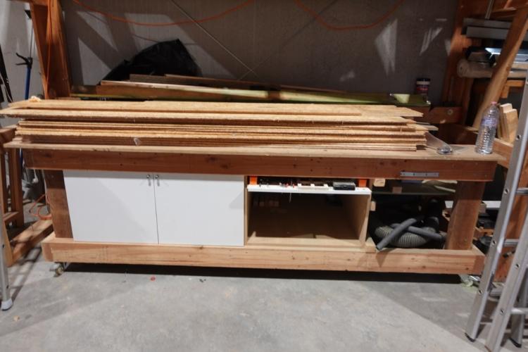 samen met houten werktafel, oa: osb, balken, mdf,...