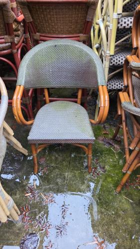 10 stuks terrasstoel hout-grijs, gebruikt uit verhuur, locatie Lauwe