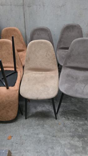 8x interierstoel stof : 4x cognac + 3x Grijs + 1x Lichtbruin, gebruikt, locatie Lauwe