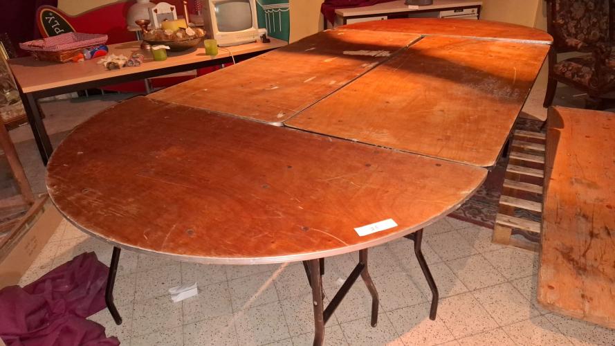 bestaande uit 2 tafels van 182cm x 76cm en 2 halve ronde tafels. Inklapbare poten. Geschikt voor 12 persoenen.