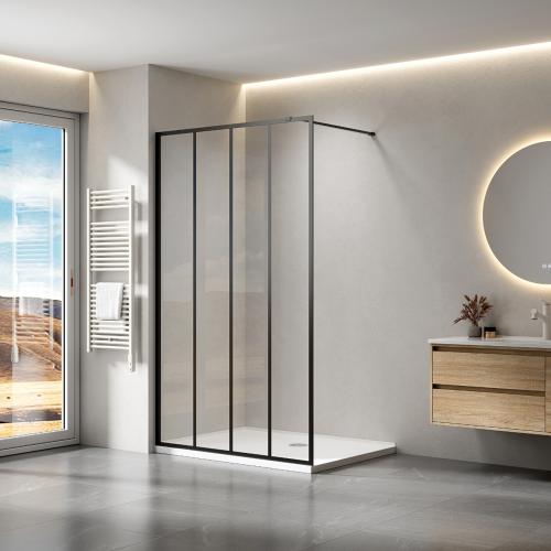 1 x 120x200 BL Inloopdouche met mat zwart frame en verticale lijnen