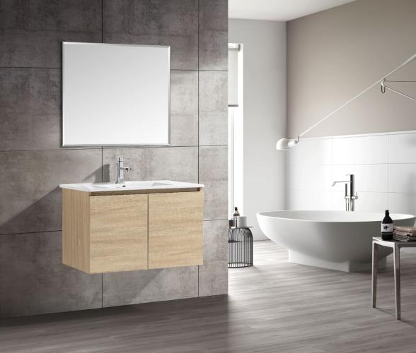 1 x 80cm badkamermeubelset MDF - BERN 80-01 - Kleur: Withe Eik - Afm. B80xH50xD46CM - Ceramic wastel - 2 deuren voorzien van Softclose systeem - Spiegel 80x70cm - kraan, krepin en sifon niet inbegrepen