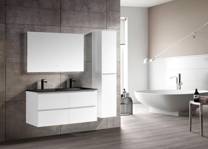 1 x 120 cm Design Badkamermeubel - ROMA120-03B - Kleur: Mat wit - Afm. B120xH50xD46CM - LED Spiegel 120x70cm (Verschillende kleurtemperaturen 3000K Warm-wit, 4000K Neutraal-wit, 6500K Koud-wit) + Anti Condens + Alle 3 de kleuren zijn dimbaar, zo kunt u het licht eenvoudig dimmen of feller maken tot het gewenste effect - Met wastafel- de onderbouwkast van het badkamermeubel bevat 4 laden en is uitgevoerd met een soft close systeem - kraan, krepin, sifon en kolomkast niet inbegrepen