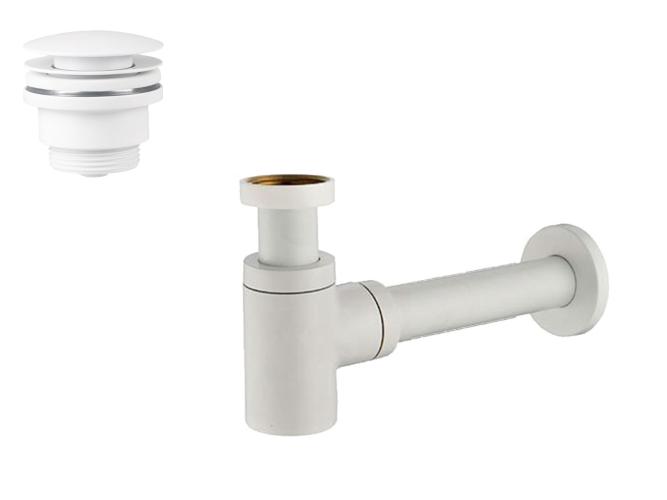 2 x Design sifon met afvoerplug - POP-UP crepine - Kleur: Mat Wit - 1¼