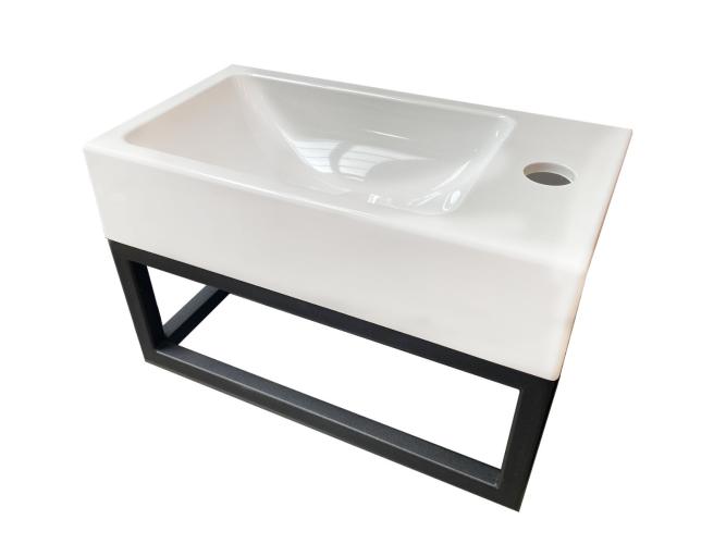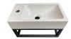 1 x 40cm Wit fonteinset - Cubo - wit smc wasbak - rechthoekige steun in mat zwart aluminium - voor montage aan de muur - kraan, krepin en sifon niet inbegrepen - met bevestigingsmateriaal inbegrepen