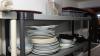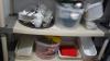 2x rek + inhoud oa: borden , serveerborden , snijplanken ,... vuilbakken , inhoud kast met borden , glazen , enz ..