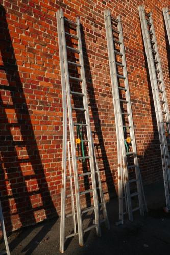 1 Alu dubbel opsteekladder, 2 x 14 sporten met wijd uitlopende basis
